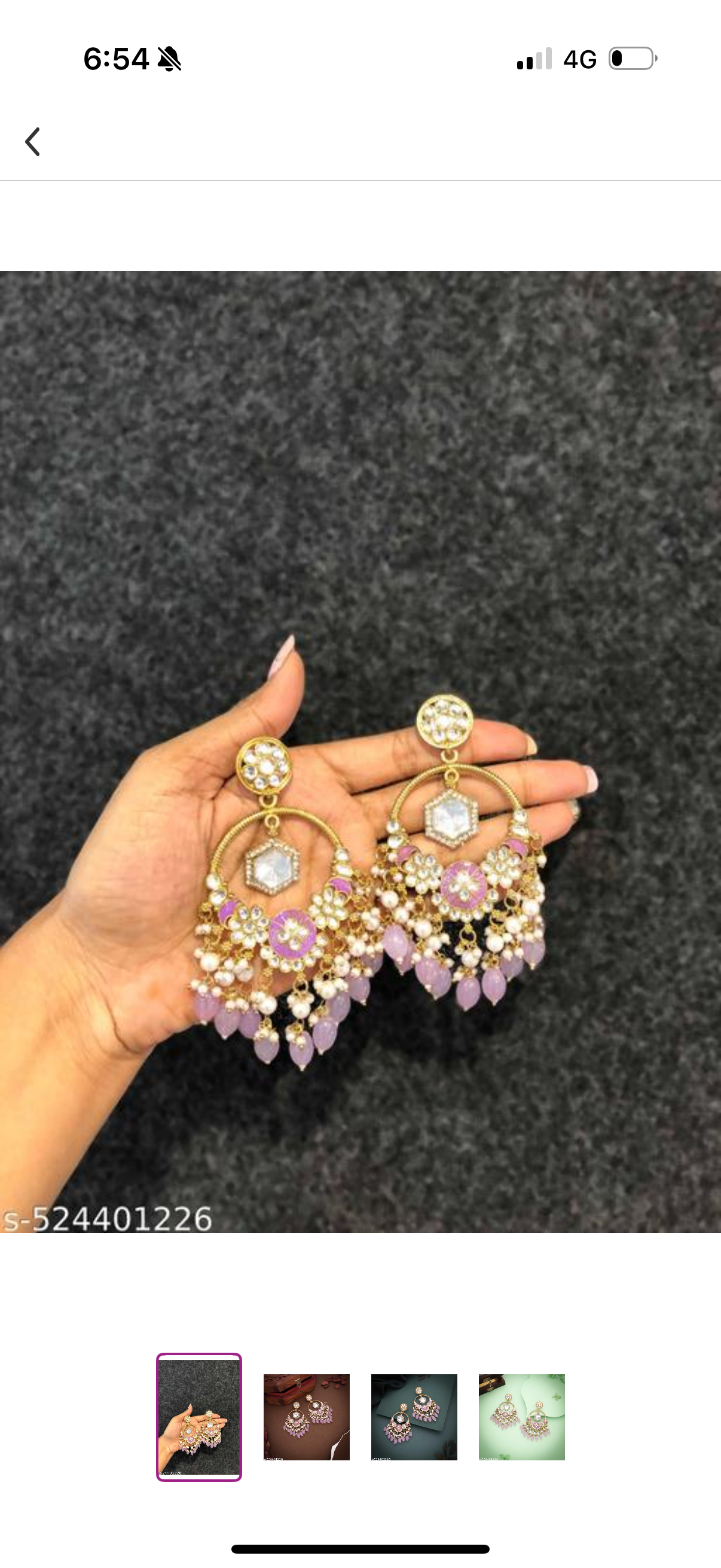 ✨ पारंपरिक कुंदन शैली में तैयार किए गए हमारे लैवेंडर पर्ल और स्टोन चांदबाली इयररिंग्स के साथ अपने लुक में शाही शान जोड़ें। ये स्टेटमेंट इयररिंग्स चमकदार अमेरिकन डायमंड स्टोन और नाज़ुक लैवेंडर मोतियों से सजे हैं, जो इन्हें शादियों, त्योहारों और पार्टियों के लिए एकदम सही विकल्प बनाते हैं।