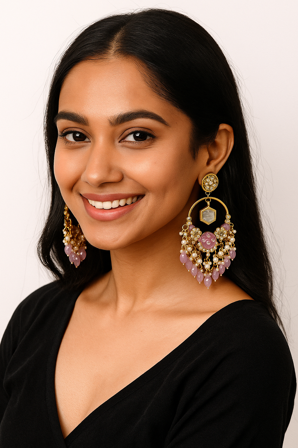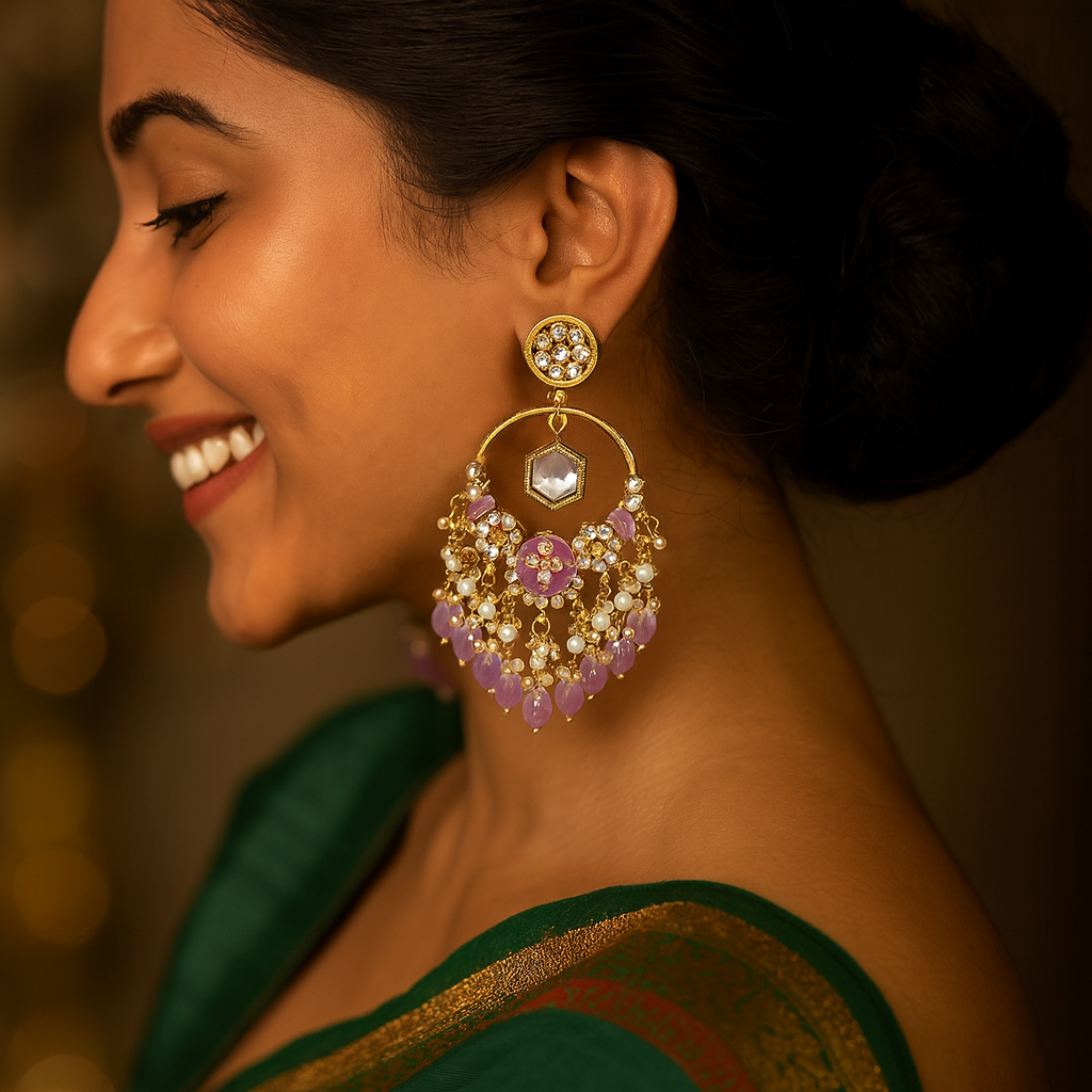 ✨ "लैवेंडर पर्ल और स्टोन चांदबाली इयररिंग्स - पारंपरिक कुंदन स्टाइल वेडिंग और पार्टी वियर ज्वेलरी"