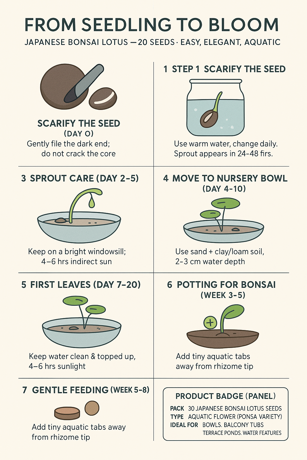 20 पीस जापानी बोनसाई कमल के बीज - घर के बगीचे और तालाब के लिए विदेशी जलीय फूल के बीज - 1 का पैक