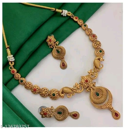 आकर्षक गोल्ड-प्लेटेड ज्वेलरी सेट - सहज सुंदरता के लिए एडजस्टेबल नेकलेस और इयररिंग"