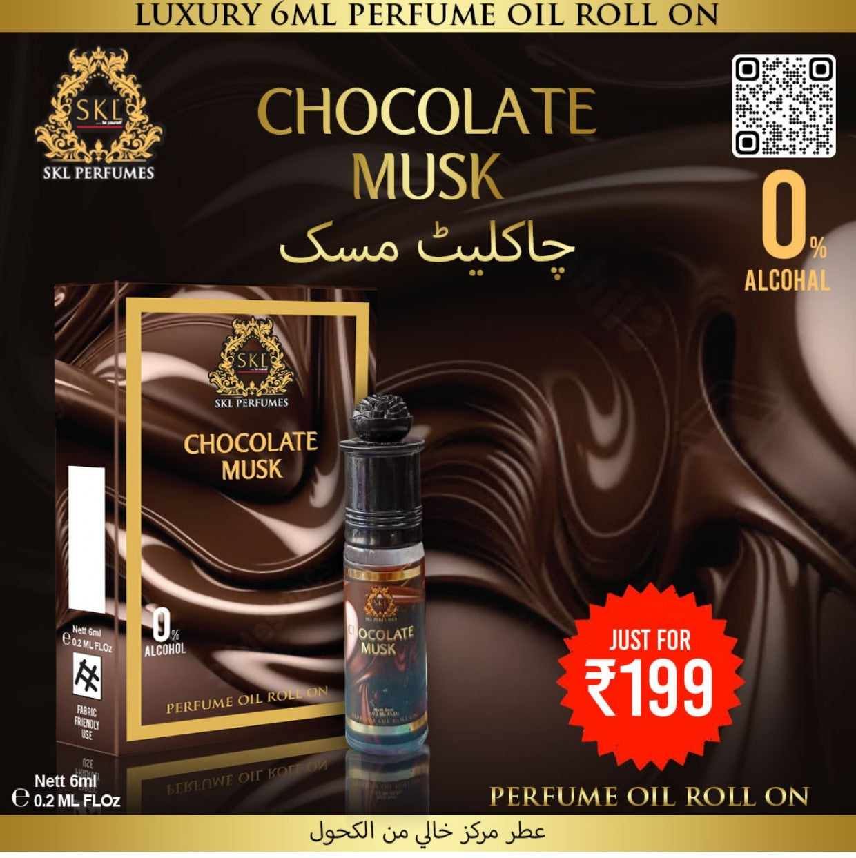 चॉकलेट मस्क लक्ज़री परफ्यूम ऑयल रोल-ऑन - अल्कोहल-मुक्त 6ml
