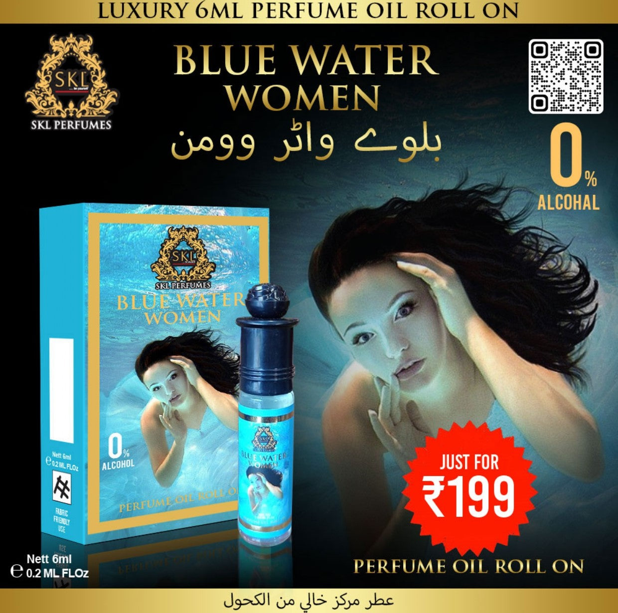 ब्लू वाटर विमेन परफ्यूम ऑयल के साथ कालातीत सुंदरता का अनुभव करें - आपकी खुशबू, आपकी पहचान।