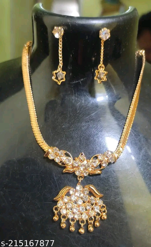 झिलमिलाता चंकी गोल्ड-प्लेटेड ज्वेलरी सेट - अमेरिकन डायमंड एलिगेंस