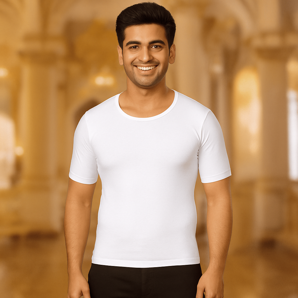 वाइकिंग पुरुषों की कॉटन बनियान - आधी आस्तीन वाला आरामदायक कैज़ुअल इनरवियर #