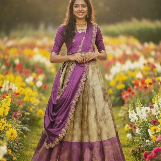 Beautiful Semi-Stitch Half Saree for Women with Woven Design & Rangoli Embroidery Dupatta | Party & Wedding Wear#