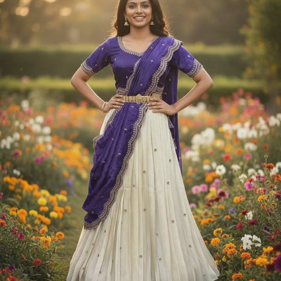 Beautiful Semi-Stitch Half Saree for Women | Pure Viscose Shimmer Fabric with Embroidery Work & Gold Crushed Blouse + Dupatta#