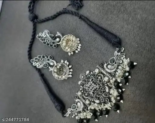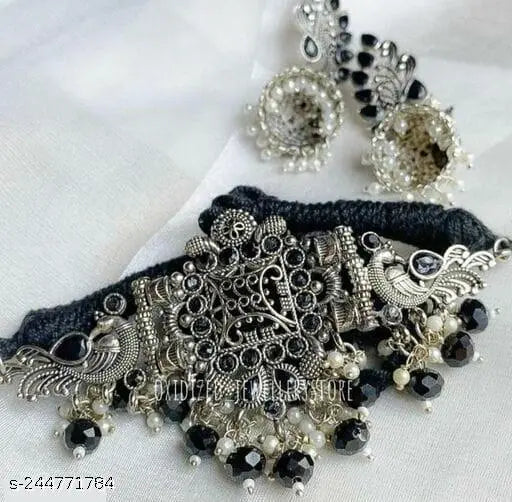 Upgrade your jewelry collection with this Elite Oxidised Silver Choker Set and make every moment sparkle!
