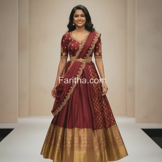 Beautiful Lichi Silk Woven Half Saree with Embroidered Blouse & Rangoli Dupatta #