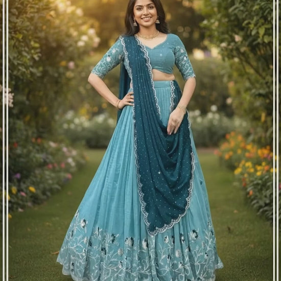 New Latest Embroidery Lehenga Choli with Heavy Embroidery Dupatta – Unstitched Blouse Piece#