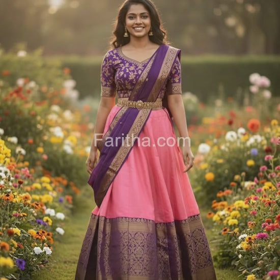 South Indian Style Litchi Silk Half Saree Lehenga with Embroidered Choli & Dupatta #