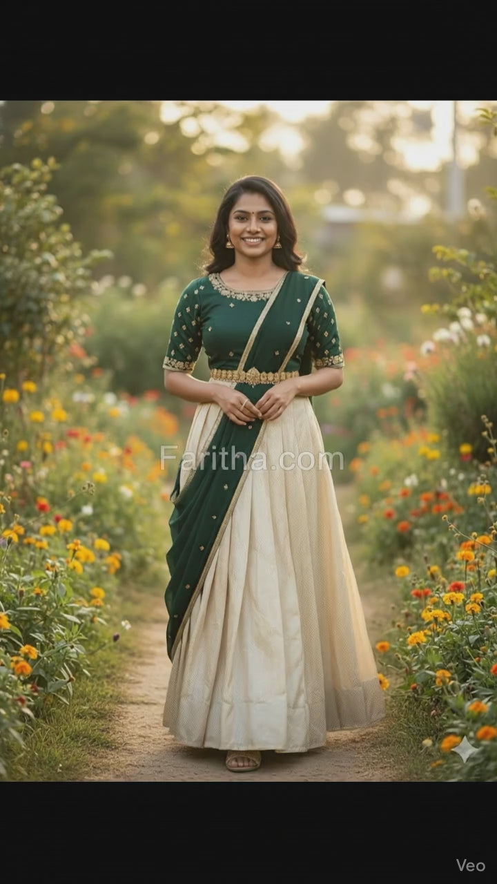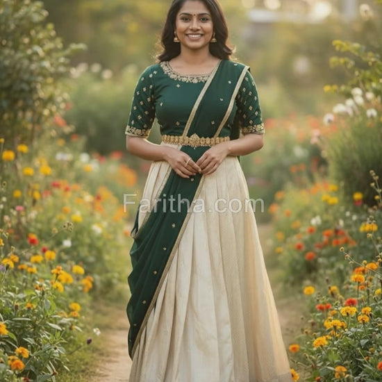 Trending Soft Silk South Indian Half Saree with Embroidery Blouse & Rangoli Dupatta#